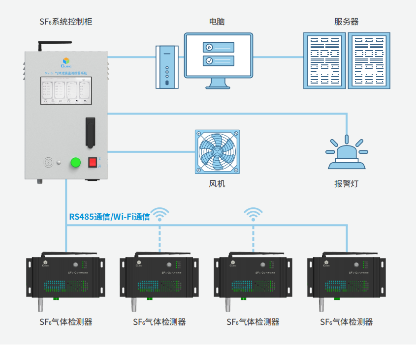 SF6+O2氣體檢測器是一款對室內(nèi)電氣設(shè)備工作場所內(nèi)空氣中六氟化硫和氧氣濃度,環(huán)境溫度、濕度進(jìn)行實(shí)時(shí)監(jiān)測,依據(jù)報(bào)警設(shè)定值進(jìn)行預(yù)警;儀器具備人體紅外監(jiān)視功能;可通過RS485通訊及WIFI通訊功能在線上傳實(shí)時(shí)檢測數(shù)據(jù);被廣泛用于在氣體分析行業(yè)、工業(yè)過程控制、環(huán)境檢測及發(fā)電廠變電站等領(lǐng)域。