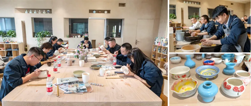 參觀結(jié)束后,管理團(tuán)隊在公司技術(shù)中心陶藝工作室體驗了揉泥、拉坯、畫胚等傳統(tǒng)制陶工序,親手制作陶器,切身感受中國陶瓷文化魅力。